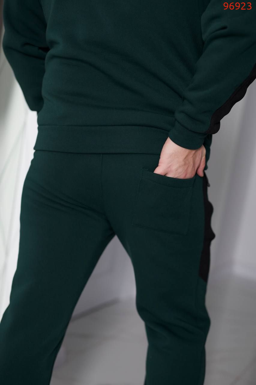 Худі прямого силуету, має зручний капюшон зі шнурками та центральну застібку-блискавку. Дві кишені кенгуру надають практичності. Низ виробу та манжети рукава на широкому трикотажному манжеті .Контрастні лампаси на рукавах і штанах роблять образ виразним та сучасним.