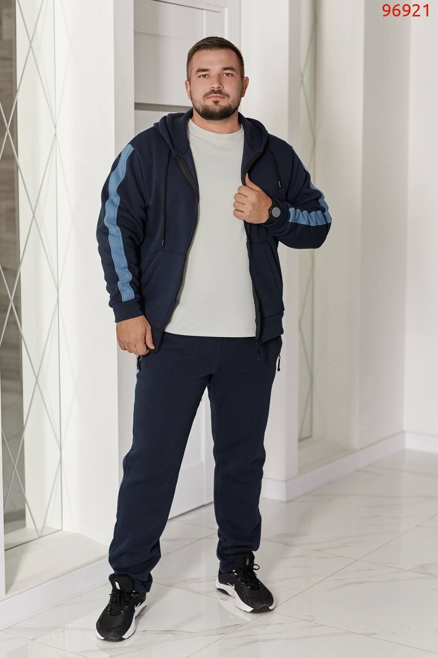 Костюм представлений у стильних базових кольорах з акцентними лампасами.