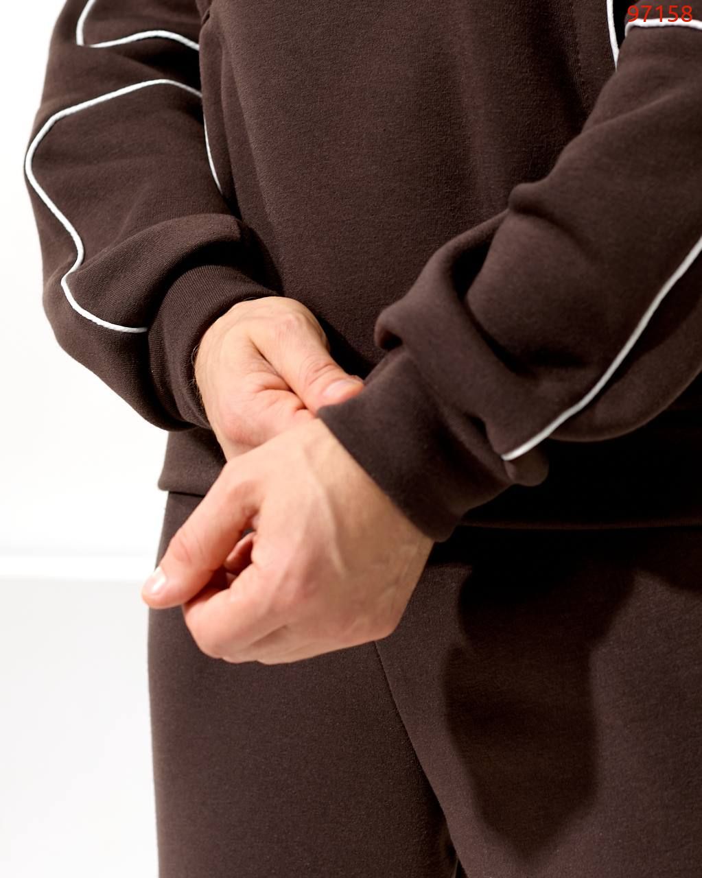 Чоловічий костюм з трьох нитки – це втілення комфорту і стилю в повсякденному одязі. М'яка тканина дбайливо зберігає тепло, дозволяючи шкірі дихати, а сучасний крій підкреслює мужність і свободу рухів. Костюм ідеально підходить як для прогулянок у прохолодну погоду, так і для домашнього затишку. Лаконічний дизайн робить його універсальним рішенням: він однаково органічно виглядає і в розслабленому, і в більш активному образі.