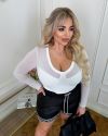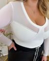 Базовий лонгслів із декоративними рельєфами по грудях. Верх лонга і рукова виконаний якісною стрейч сіткою