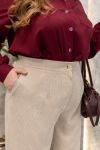 Ці класичні брюки з вельвету – стильне поєднання фактурності та комфорту. М’яка тканина з виразним рубчиком додає образу глибини та благородного вигляду, а стрілки формують витончений силует і візуально подовжують ноги. Модель доповнена зручними кишенями, що зберігають практичність без зайвого об’єму. Ззаду на талії – еластична вставка, яка забезпечує комфортну посадку та акуратно підлаштовується під фігуру. Брюки застібаються на ґудзик і блискавку, гарантуючи надійну фіксацію та бездоганний вигляд. Ідеальний варіант як для офісу, так і для стильних повсякденних образів. Легко комбінуються із сорочками, блузами чи жакетами, а також чудово виглядають як із підборами, так і з лаконічним взуттям на низькому ходу. Це ті брюки, які додають образу впевненості й шарму з першого погляду. Пояс НЕ входить в комплект.