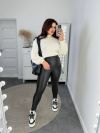 Матеріал якісний та має гарну еластичність ,сідає ідеально. Утеплені на тонкому флісі. Дуже мʼякий матеріал. Матові