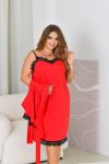 Халат на запАх, під пояс із основної тканини. Рукав 3/4 декорований ніжним мереживом. Є накладна кишеня.