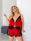 Піжама - Комплект. шорти+пенюар. шорти на гумці з широким мереживом внизу шорт. Пенюар на регульованій бретелі, з мереживом по грудях та під грудьми, гумка під грудьми.