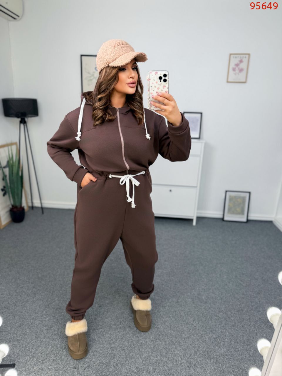 Осінньо-зимовий теплий прогулянковий комбенезон. Комбенезон на змійці, з капюшоном, функціональними кишенями, попереду та ззаду, на талії та на капюшоні шнур для стажка з фіксаторами.