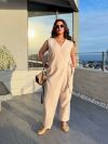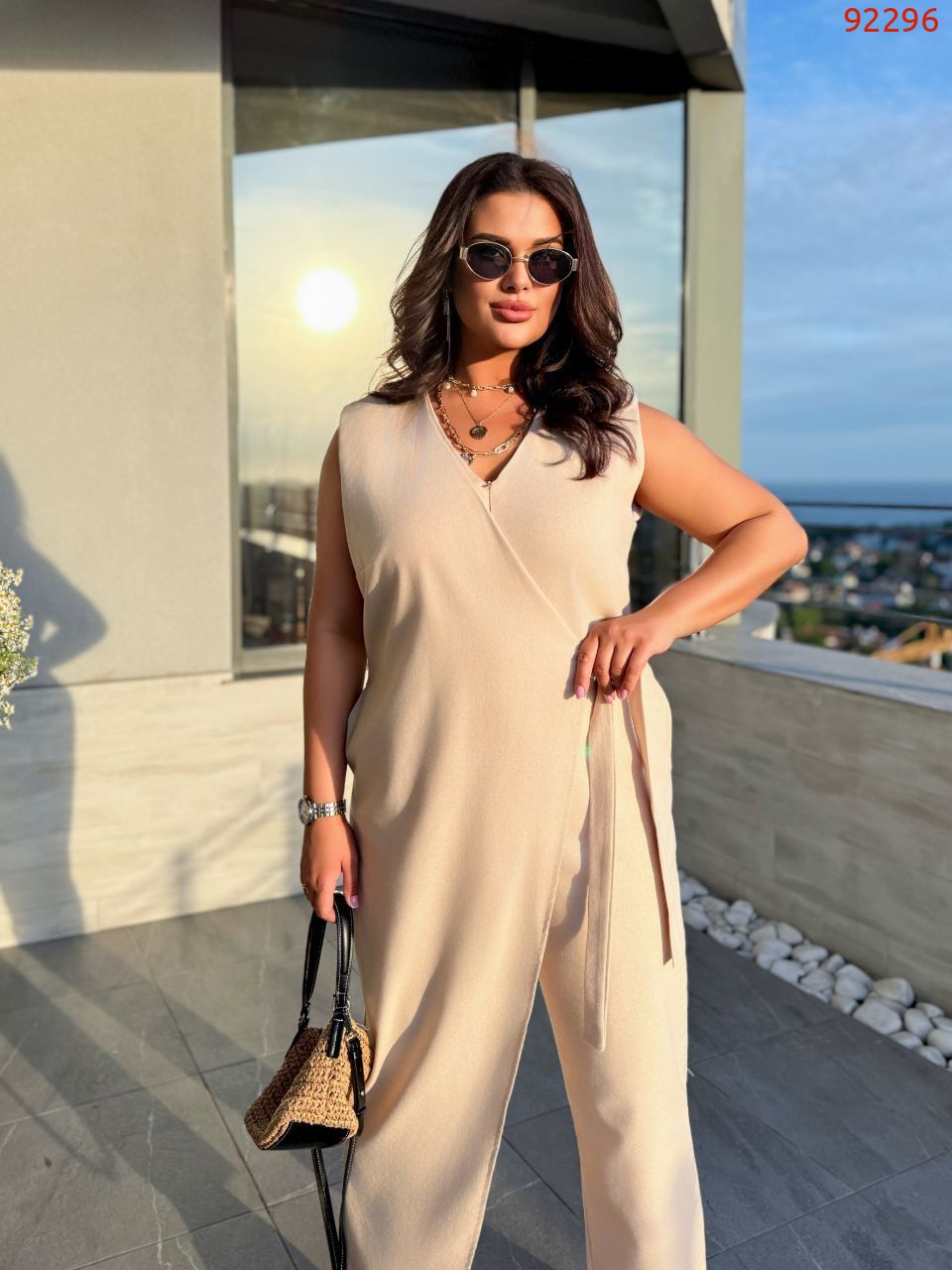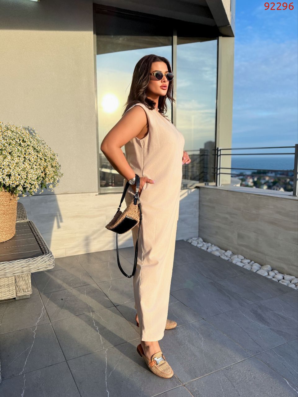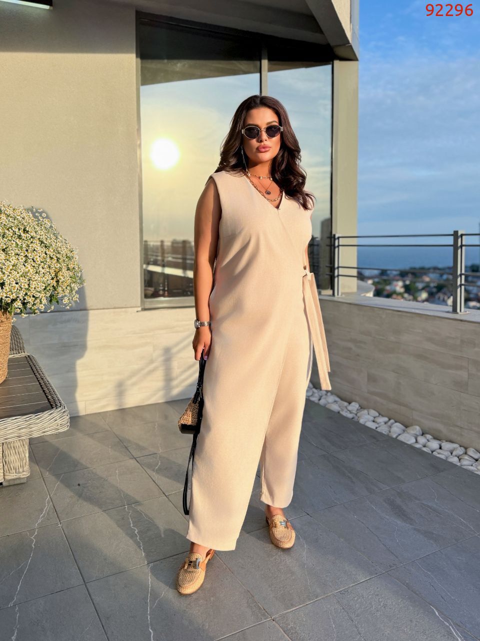 Літній комбінезон виготовлений із льону – дихаюча тканина, ідеальний вибір для спекотних днів. Вільний крій, стильний запах, функціональні кишені. Ефектний асиметричний крій додає виробу родзинку.