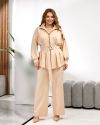 Жіночий костюм, що складається з блузи на блискавці та широких штанів.