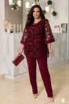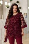 Комплект двох предметний, складається з блузки та штанів. У такому вбранні жінка виглядатиме елегантно, святково на будь-якій події. Блузка напівприлеглого силуету виготовлена ​​з флока на сітці. Горловина округлої форми. Полиця з нагрудними виточками. Рукав втічний, вільний 3/4. Штани злегка звужені донизу. Прекрасний вибір для вашого образу, який поєднує в собі красу та зручність.
