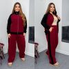 Теплий костюм на холодну пору . Комбінований бомбер на блискавці , з стійкою . Штани з високою посадкою , пояс на гумці , з ломпасом , бічні кишені .
