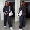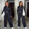 Довжина штанів : 106 см. Широкі штани з високою посадкою , пояс на гумці , бічні кишені . Кофта прямого покрою
