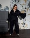 Довжина брюк 77/110. Пояс на гумці, висока посадка. Кардиган одягається на запах, підвʼязується поясом . Рукава внизу широкі.