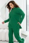 Легкий костюм-двійка, виконаний з м’якої та теплої тканини, відмінно поєднується з кросівками і великими джинсовими куртками. До його складу входить кофта крою oversize зі светром з довгими рукавами і капюшоном, а також актуальні штани-палаццо вільного крою з кишенями на резинці, вшитій по лінії талії.