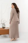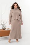 Стильний костюм, який складається з сукні та кофтинки, поєднує елегантність та комфорт в одному образі. Кофта з високою горловиною та довгими рукавами з манжетами виглядає дуже витончено, а занижена лінія плеча додає легкості та сучасного вигляду. Позаду кофтинка трохи довша, ніж спереду, що підкреслює її оригінальний стиль. Сукня максі-довжини, з прямим кроєм, створює елегантний силует, підкреслюючи витонченість фігури. Її V-подібний виріз горловини додає образу легкості та жіночності. Особливого шарму додає шов, що проходить по спинці, надаючи сукні вишуканого вигляду. Виготовлена з еластичної тканини, яка м’яко облягає тіло, сукня підлаштовується під ваші рухи, забезпечуючи максимальний комфорт і зручність. Ідеальний вибір для вечірки, урочистої події або важливого заходу, цей костюм гарантовано приверне увагу.