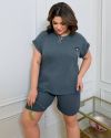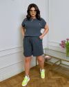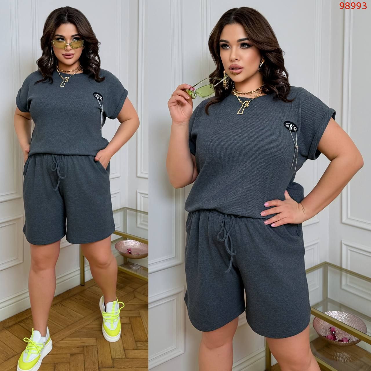 Костюм з трикотажу стрейч «вафелька»: футболка з манжетами на рукавах та Акс + шорти з високою посадкою на гумці, з кішкнями у бічних швах та шнурком на поясі