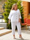 Прямі вкорочені штани з підворіттям на штанинах. Вони також виконані у вільному стилі, що підкреслює загальний розслаблений та елегантний образ