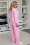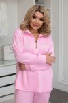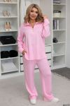 Костюм-двійка : кофта на молнії на грудях , , по низу нашивка , рукава на манжеті ; штани до низу вільні , з боків кишені , талія на резинці.