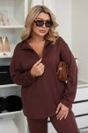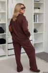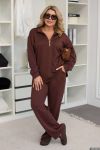 Костюм-двійка : кофта на молнії на грудях , , по низу нашивка , рукава на манжеті ; штани до низу вільні , з боків кишені , талія на резинці.