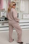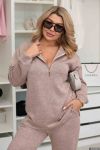 Костюм-двійка : кофта на молнії на грудях , , по низу нашивка , рукава на манжеті ; штани до низу вільні , з боків кишені , талія на резинці.