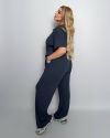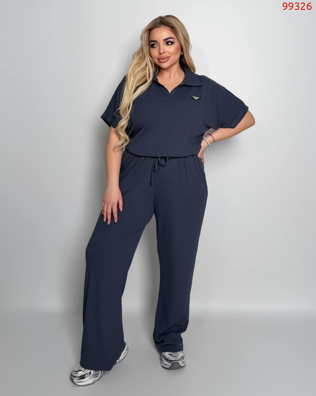 Стильний комфортний костюм “Barcelona” з трикотажу рубчик хб стрейч: футболка у стилі поло оверсайз з Акс + штани прямі розширені з високою посадкою з кішенями у бічних швах, з куліскою на поясі