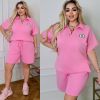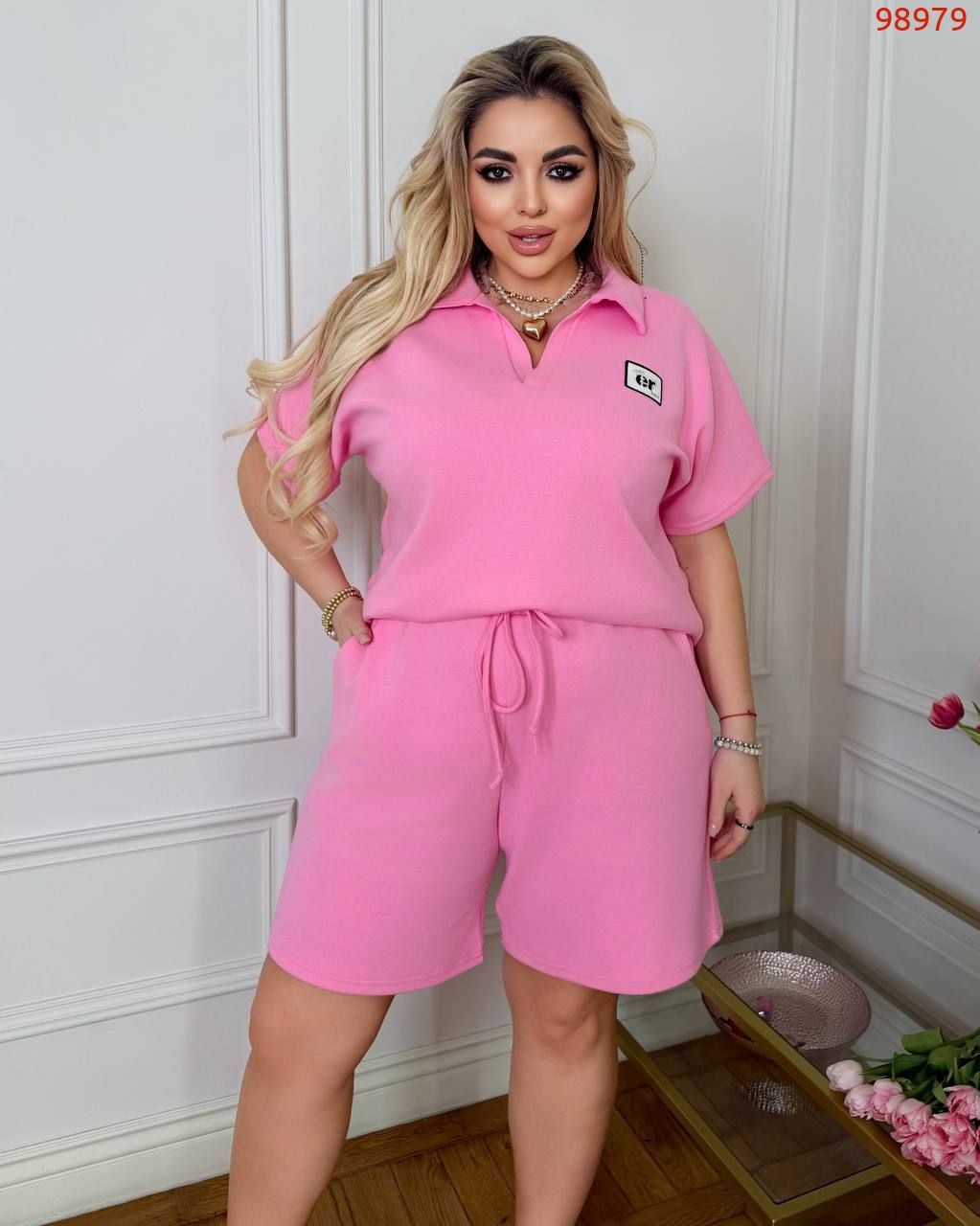 футболка поло у стилі оверсайз + шорти з високою посадкою з кішенями у бічних швах, з куліскою на поясі)