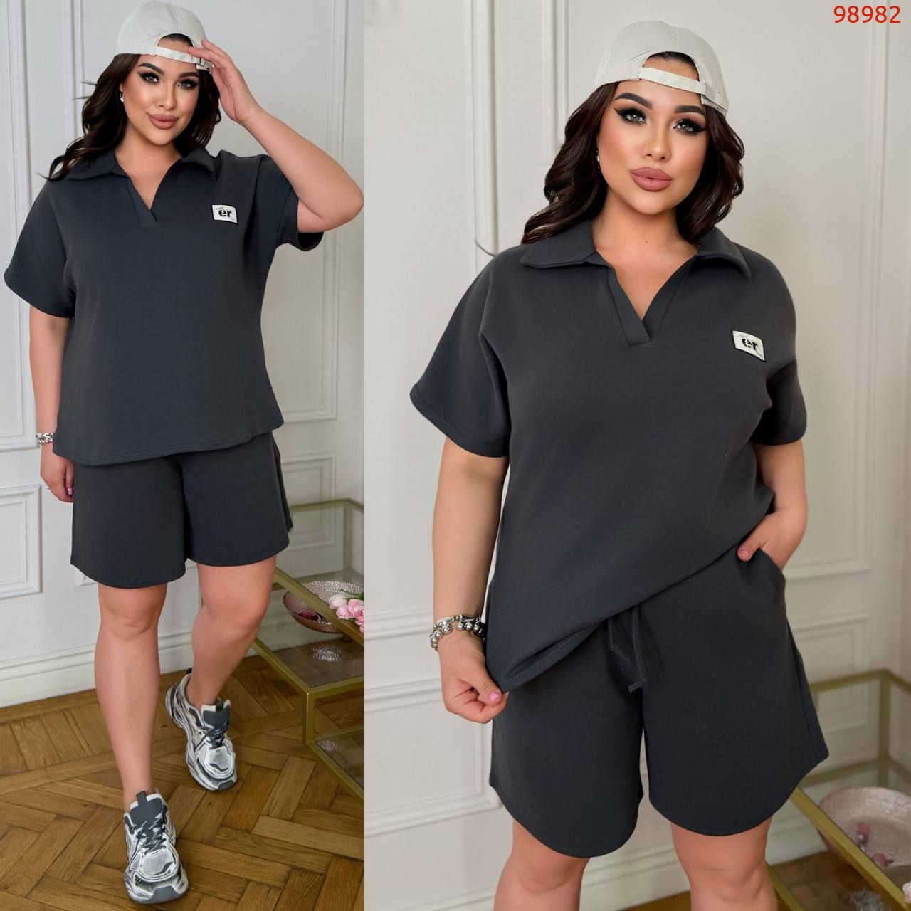 футболка поло у стилі оверсайз + шорти з високою посадкою з кішенями у бічних швах, з куліскою на поясі)