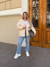 58-60 ог 150 см, спинка 68 см, рукав 75 см.