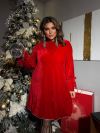 обробкою. Рукави та край подолу оздоблені блискучими камінцями, що додає образу святковості та розкоші. Довгі рукави з обʼємними