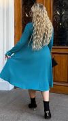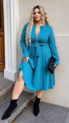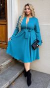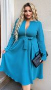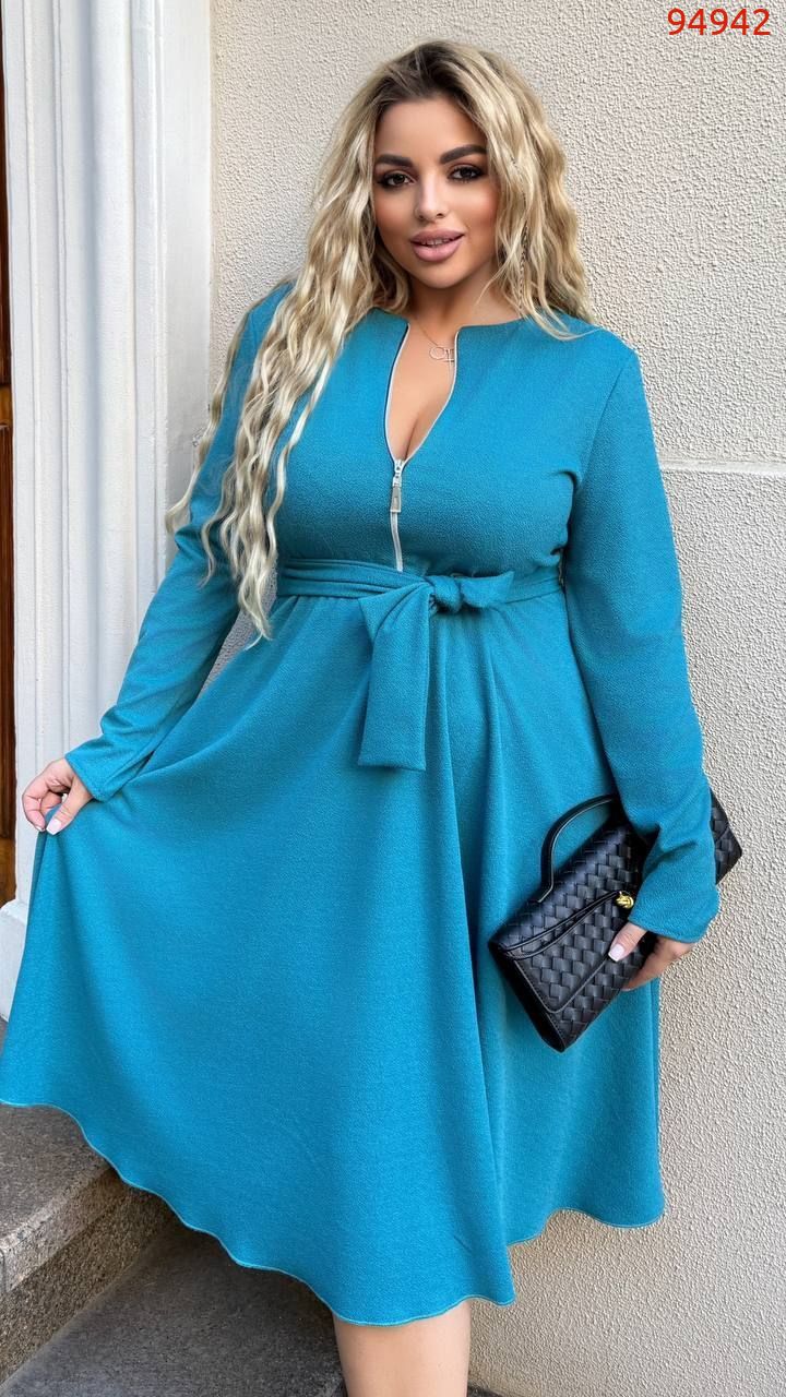 Яскрава сукня з пишною спідницею , з переду на блискавці , пояс з основної тканини .