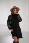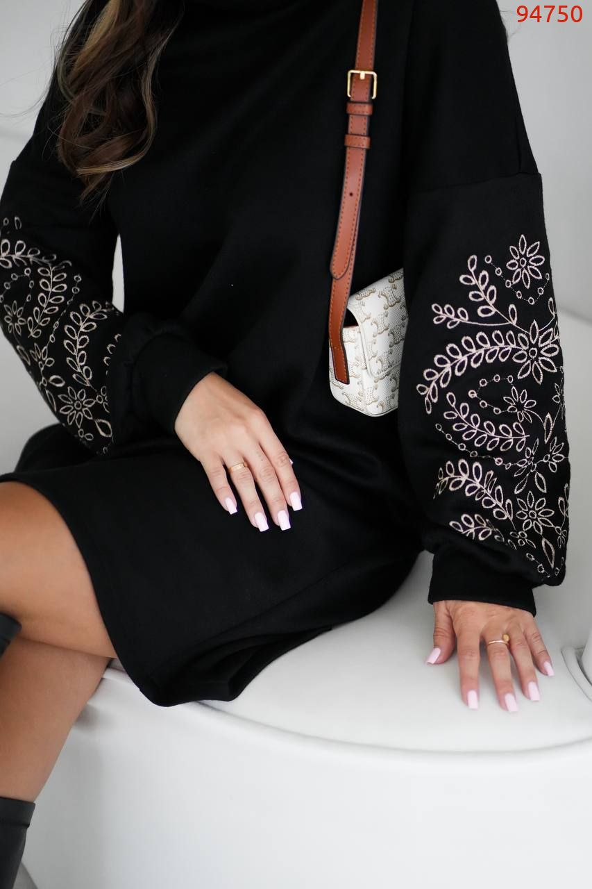 Трикотажна сукня з високим горлом і вишитими рукавами – ідеальне поєднання тепла та елегантності.