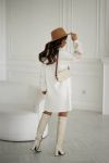 Об’ємні рукави завершені манжетами, що робить образ гармонійним і сучасним.