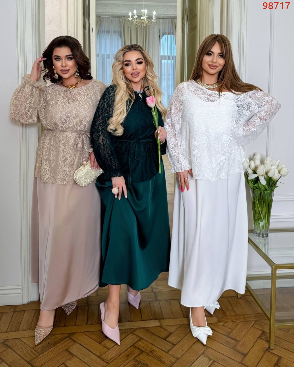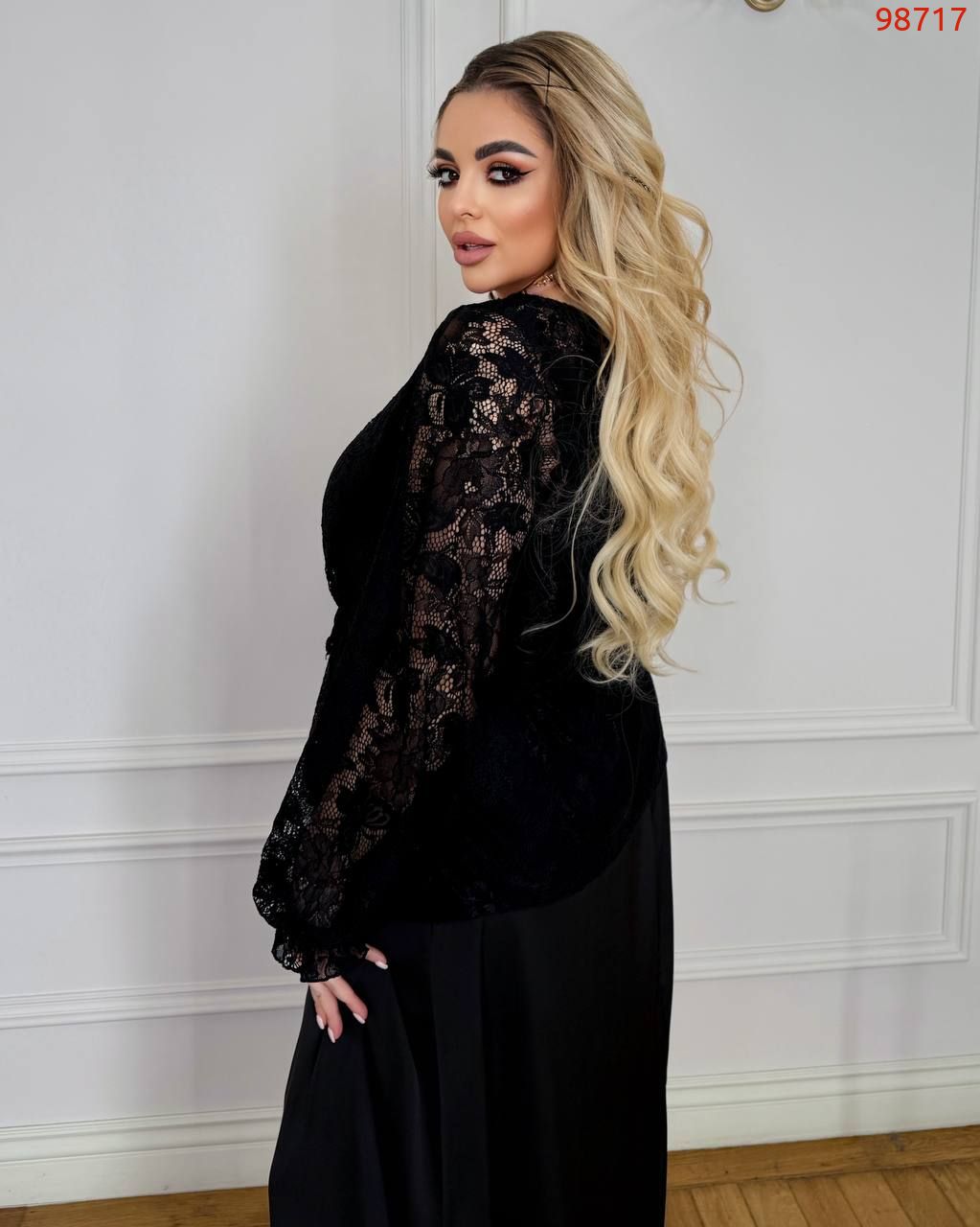 Образ в цілому: модель легко вписується як у святковий, так і в елегантний повсякденний гардероб. У поєднанні з довгою спідницею, що тече, образ виглядає ніжно, статусно і дуже жіночно.
