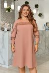 Ефектна жіноча сукня А-силуету. Це святкове, але в той же час елегантне вбрання прикрашене вставками з сітки з блискучим напиленням і здатне підкреслити індивідуальність і шляхетність своєї володарки. На спинці оброблена крапелька на навісну петлю та гудзик. Силует сукні чудово приховує нюанси фігури та підкреслює переваги.