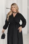 Неймовірно жіночна довга сукня у вечірньому стилі із софта (легка тканина. розтяжності немає). Ліф сукні виконано на запАх. Рукави довгі, на резинці по низу. Талія відрізна, зібрана на резинку. Спідниця форми сонцекльош. Пояс із основної тканини в комплекті. Застібок, кишень немає.