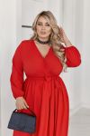 Неймовірно жіночна довга сукня у вечірньому стилі із софта (легка тканина. розтяжності немає). Ліф сукні виконано на запАх. Рукави довгі, на резинці по низу. Талія відрізна, зібрана на резинку. Спідниця форми сонцекльош. Пояс із основної тканини в комплекті. Застібок, кишень немає.