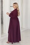 Неймовірно жіночна довга сукня у вечірньому стилі із софта (легка тканина. розтяжності немає). Ліф сукні виконано на запАх. Рукави довгі, на резинці по низу. Талія відрізна, зібрана на резинку. Спідниця форми сонцекльош. Пояс із основної тканини в комплекті. Застібок, кишень немає.