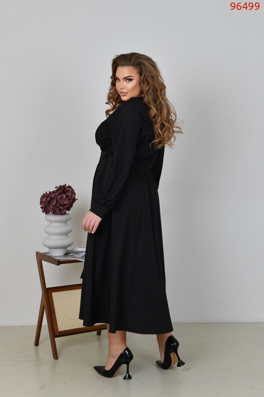Неймовірно жіночна довга сукня у вечірньому стилі із софта (розтяжності немає). Ліф сукні та спідниця на запАх, по талії зібрана на резинку. Рукави довгі, на манжеті. Пояс із основної тканини в комплекті. Кишень, застібок немає.