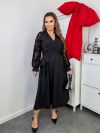 Неймовірно жіночна ошатна сукня у вечірньому стилі, довжиною міді. Сукня виконана із тканини софт (розтяжності немає). Ліф та спідниця мають запАх, по талії зібрано на резинку. Рукави виготовлені із дуже гарного гіпюру, на манжеті. Пояс із основної тканини в комплекті. Кишень та застібок немає