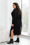 Мінімалістична жіночна сукня, виконана з м'якої ангорової тканини, здатна надати силуету вашої фігури м'якості і природності. Модель прямого силуету доповнена довгими рукавами "реглан" з манжетами, а також фігурним вирізом збоку внизу і трохи асиметричним низом, подовженим спереду. Родзинкою цієї сукні є текстильний пояс, вшитий в бокові шви, за допомогою якого ви можете змінювати свій образ, зав'язуючи його спереду або ззаду.