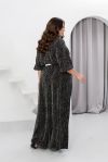 Довга сукня з мерехтливим дизайном – втілення ніжності, жіночності та святкової елегантності. Півкруглий виріз горловини та відрізна лінія талії підкреслюють фігуру, а спадаючі плісовані оборки додають легкості й витонченого руху. Рукави довжиною 3/4 з м’якими резинками на зап’ястках створюють об’єм і делікатний акцент. Вертикальні виточки формують красивий силует, а поясок із комплекту дозволяє обрамити талію, додаючи завершеності образу. Ця сукня м’яко виблискує при кожному русі – ідеальний вибір для особливих моментів, коли хочеться сяяти по-справжньому. Срібний пояс входить в комплект.