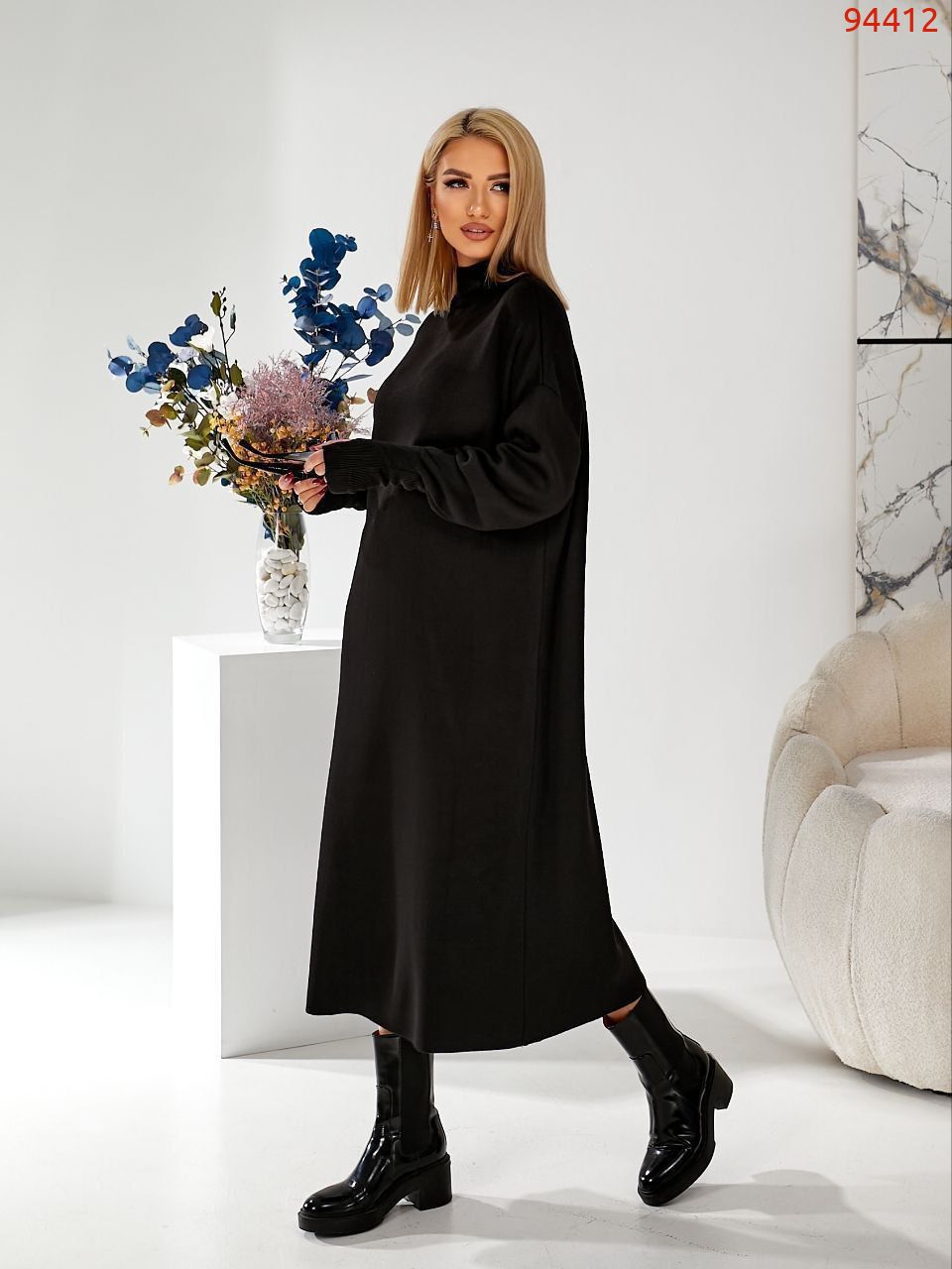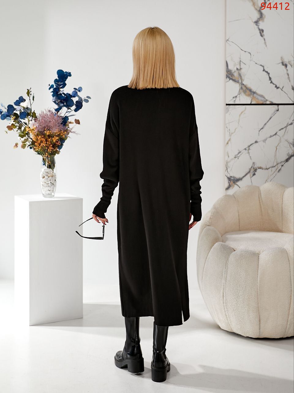 Характеристики:Обхват грудей: 120–140 смДовжина: 118 смРукав від горловини: 80 смЗнизу – розріз збоку (28 см)На рукавах стильні розрізи для пальців