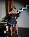 Низ виробу прикрашений бахромою зі страз, яка пришита поверх тканини та не чіпляє колготки.