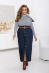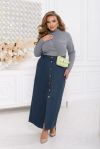 Джинсова спідниця з розрізом – це втілення стилю, що поєднує класичний дизайн з сучасними деталями. Вона виготовлена з якісного деніму, надаючи їй міцність та щільну текстурну поверхню. Велика перевага цієї спідниці полягає у її максі довжині, яка надає їй жіночності та елегантності, роблячи її відмінним вибором для різних сезонів та заходів. Застібка на гудзики дозволяє легко регулювати висоту розрізу, забезпечуючи комфорт та можливість вибору. На талії розміщені шлейки для поясу, дозволяючи доповнити спідницю улюбленим аксесуаром. Джинсова спідниця чудово вписується в різноманітні стилі. Ви зможете створювати безліч образів, поєднуючи її з топами, сорочками, футболками або светрами. Ця спідниця дозволяє легко створювати як повсякденні, так і вечірні вигляди, залежно від аксесуарів та взуття, які ви виберете для завершення образу.