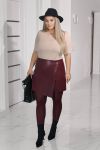 Виріб поєднує вигляд спідниці спереду та шорти ззаду. Передня частина виконана у вигляді асиметричної накладної деталі (імітація запаху), що перекриває класичні шорти .