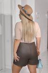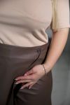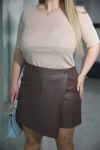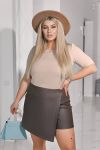Стильна спідниця-шорти – ідеальне поєднання жіночності та комфорту. Силует прилеглий по талії та стегнах, високої посадки . Пояс суцільнокроєний без резинки. Потайна застібка - молнія спереду під асиметричною деталлю і на ґудзик спереду збоку .