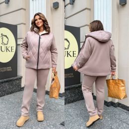 Не забывают фактурные модницы и о зимних спортивных костюмах большого размера. Подобные модели выбирают:
