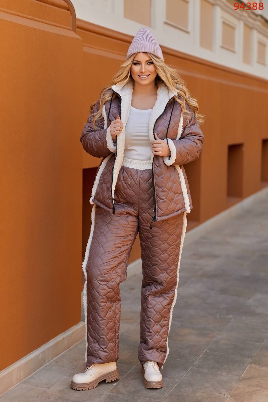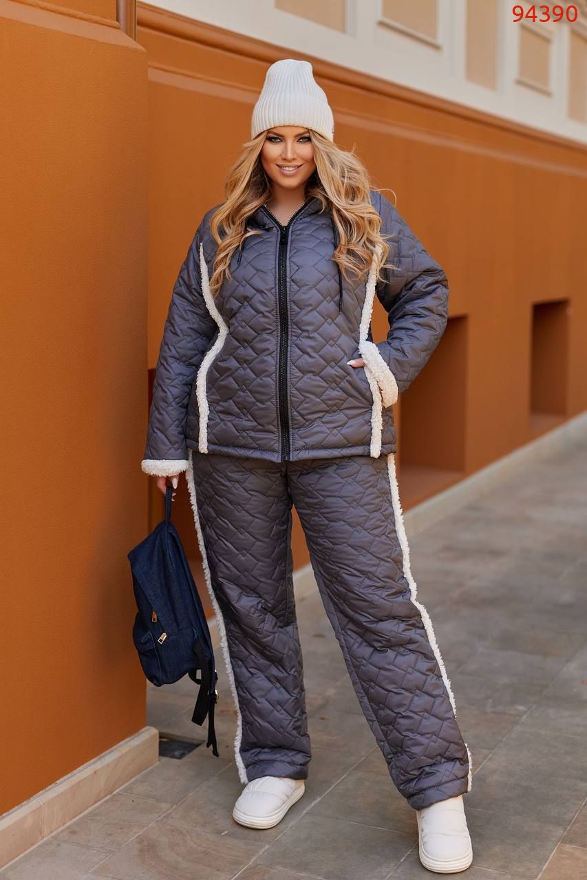 Не забывают фактурные модницы и о зимних спортивных костюмах большого размера. Подобные модели выбирают: