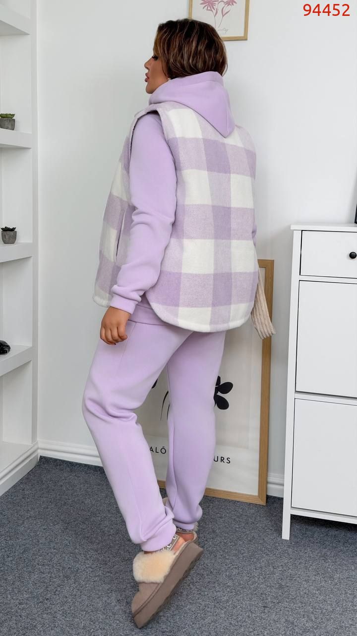 Осінній утеплений костюм трійка - жилет + худі + штани . Жилет на блискавці , комір стійка , з кишенями .