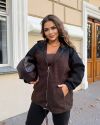 Тканина: Якісний мʼякий дуже теплий еко баранчик на флісі, комбінований чорною Хб стрейч триниткою на флісі. Добра розтяжність.