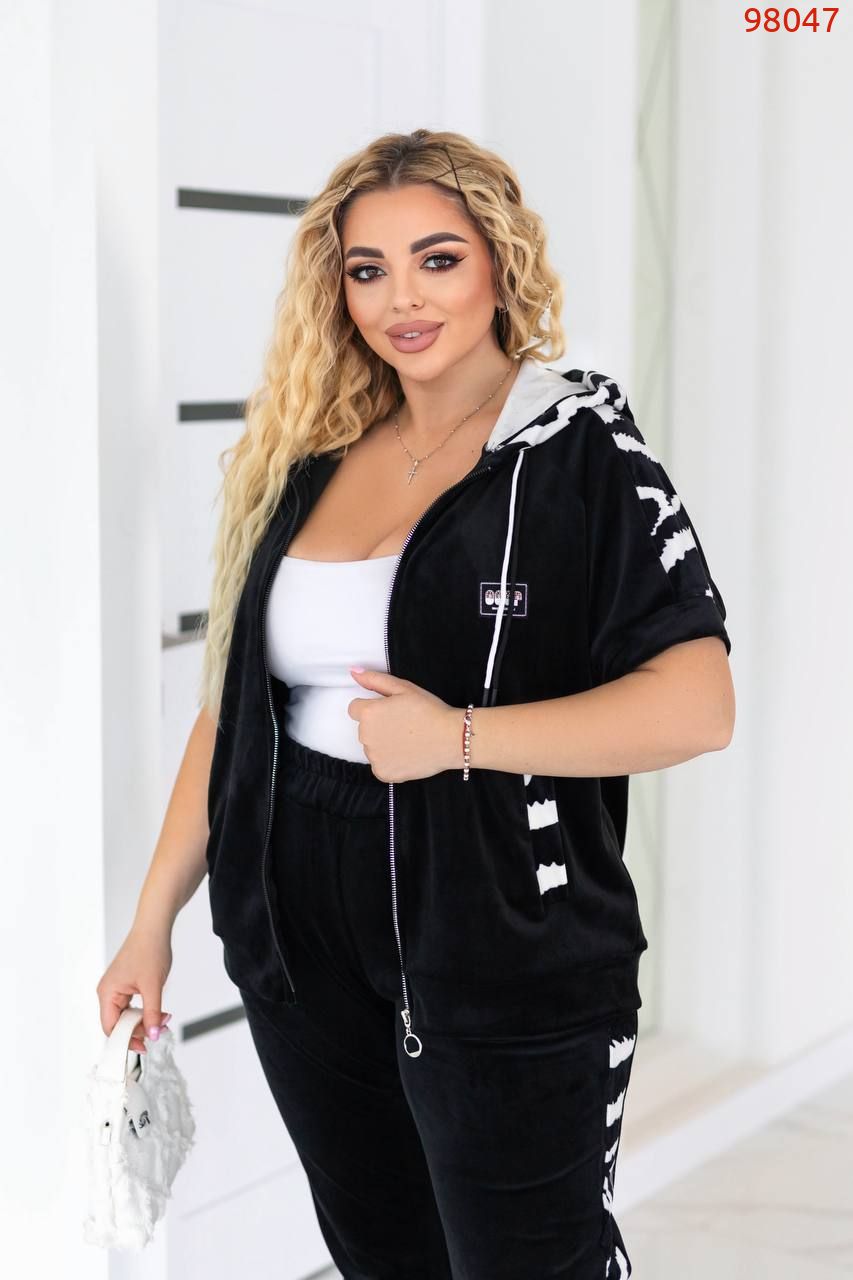 Костюм двійка велюр чорний білий №98047