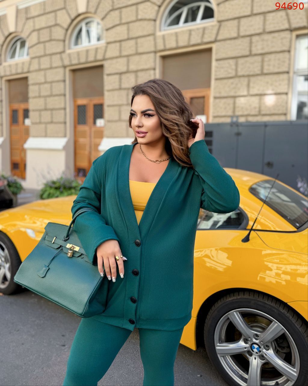 Осінній прогулянковий костюм. Кофта+ Лосини. Кофта подовження на функціональних гудзиках, з довгим пукавом. Лосини без кишень на поясі гумка. Тканина трикотаж махра рубчик.